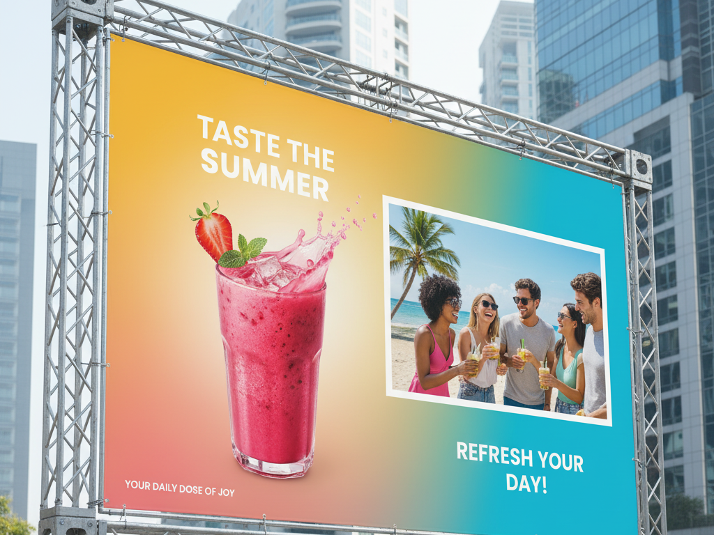Ground-Level Visibility & Local Reach. This service focuses on tangible, large-format out-of-home (OOH) media. It includes the design, high-quality printing, fabrication, and installation of durable flex banners, hoardings, wall wraps, and promotional signage for both metro and non-metro markets, ensuring mass awareness and local presence.